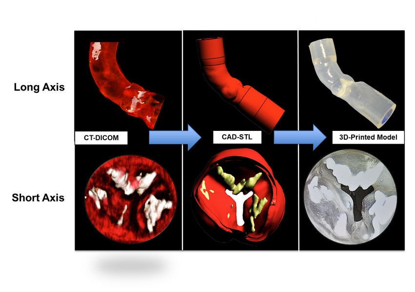 • πρωτοποριακή ερευνητική μελέτη στο “Houston Methodist Hospital” (TX, USA) στα πλαίσια της οποίας κάνοντας χρήση απεικονιστικών δεδομένων από την αξονική τομογραφία ασθενών δημιούργησε επιτυχώς -με τη μέθοδο της τρισδιάστατης εκτύπωσης- μοντέλα στένωσης της αορτικής βαλβίδας (3D printed patient specific models) πραγματοποιώντας επιτυχή λειτουργικό υπερηχοκαρδιογραφικό έλεγχό τους σε ένα κύκλωμα προσομοίωσης της παλμικής καρδιακής λειτουργίας.